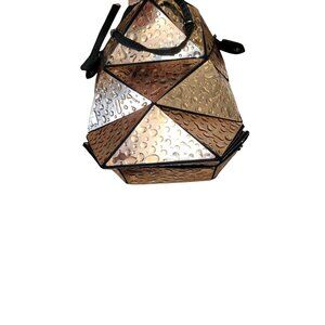 This chic tote bag boasts a stylish geometric pattern, offering both functionality and flair. The metallic finish adds a touch of sophistication, making it versatile for various settings.