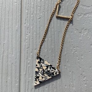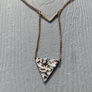 Geometric Necklace goldtone chain 26” Triangle navy cream pendant