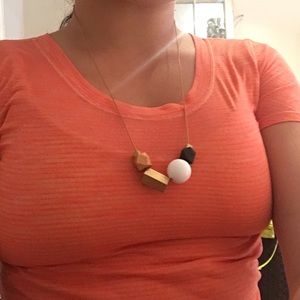 The Stella Mini. This necklace features an adjustable cord so that it can be worn at a variety of lengths. At its longest it is 34 inches and drops 10 inches from the neck. At its shortest it measures 22 inches. I prefer to wear it at 28 inches, dropping 8 inches below the neck just under the bust. Not Madewell, listed as such for views.
