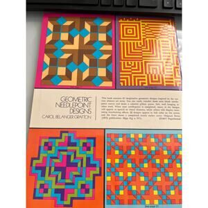 A geometric needle point design book. 1975. And great vintage condition. Could show some imperfections due to age. Please refer to all photos for condition and what is included for designs.