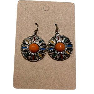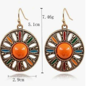 Geometric Orange Gold Bohemian Circle‎ Drop Earrings