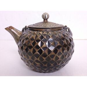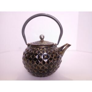 Geometric Pattern Cast Iron Japanese Style Tea or Coffee Pot 5" Tall Pot