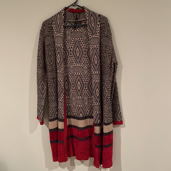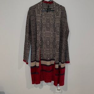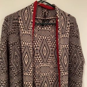 EUC long open cardigan. Interesting graphic pattern.