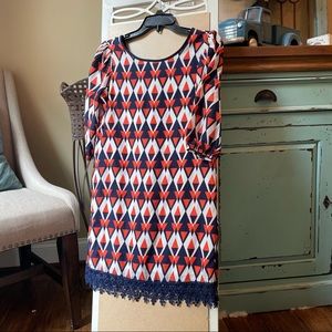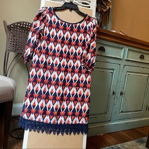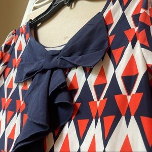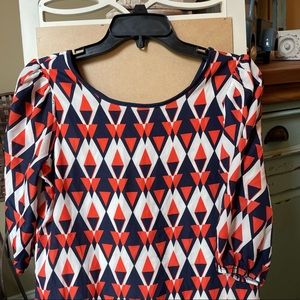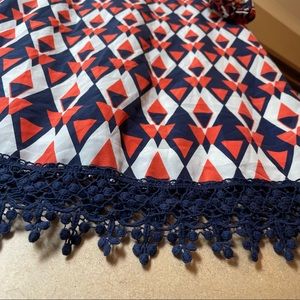 Geometric pattern of navy, orange, white