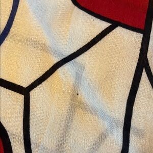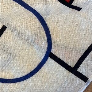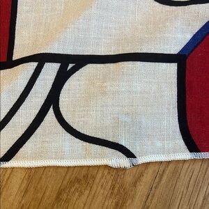 In good shape besides a few flaws(please refer to the last photos). Has folds throughout. Unbranded. White, black, red, and blue.