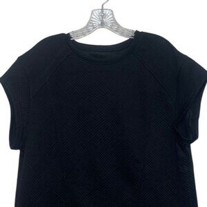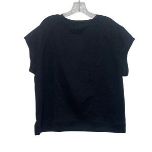 Geometric Pattern Short Sleeve Top Blouse Womens Large Black