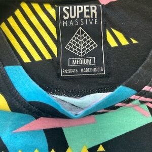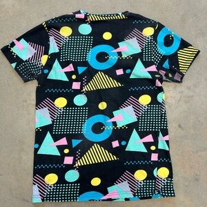 Men’s 80’s Style Black and Neon Geometrical Graphic Tee Size Medium