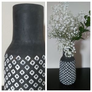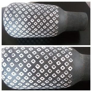 Pottery/Ceramic Geometric Pattern Gourd Shape Vase...(Heavy/Sturdy)(Flowers Styling Purposes)(Picture 7 Top, Picture 8 Bottom)