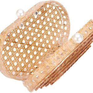 Geometric Pattern Woven Rattan Clutch - Versatile Evening Bag for Any Occasion