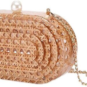 Geometric Pattern Woven Rattan Clutch — A versatile and handcrafted evening bag.