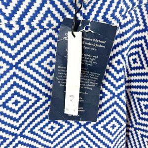 Stylish and chic, this geometric patterned skirt is perfect for any occasion. The blue and white design adds a modern touch to your wardrobe.