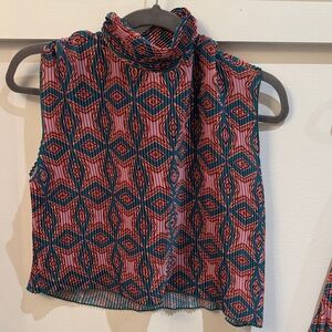Stylish crop top featuring a vibrant geometric pattern. Perfect for a chic and modern look.