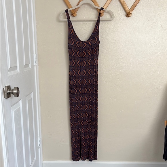 Stylish geometric patterned dress perfect for any occasion. Features a blend of black and brown colors for a chic look.