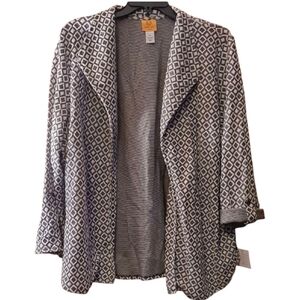 Elevate your style with this chic geometric patterned gray jacket. Perfect for any occasion, this jacket offers both comfort and elegance.