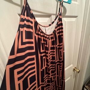 Stylish wide leg baggy jumpsuit with a bold geometric pattern. Features a mix of black and pink colors. Non-sheer soft and comfortable material for any occasion. Fantastic in the summer, suitable with a tee, elegant with a sweater for spring, and slams with a blazer.