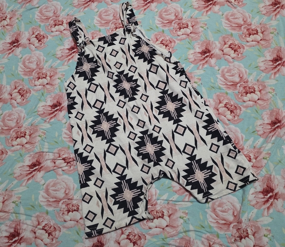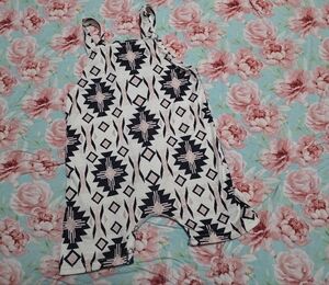 Stylish overalls with a bold geometric pattern. Features black and cream colors. so cute! size 12-18 months VGUC