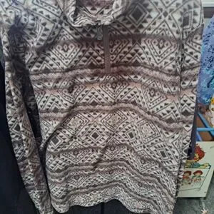 Stylish pullover with a geometric pattern. Features a half-zip design. Perfect for casual wear.