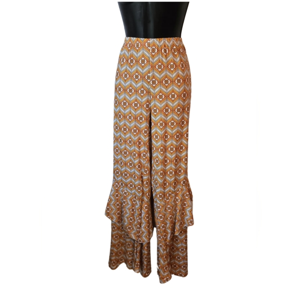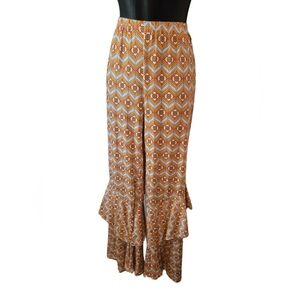 Geometric Patterned Ruffle Bell Bottom Pants