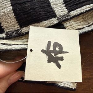 Stylish black and white scarf featuring a unique geometric pattern. Measures appx 52” in length and 9” wide. Perfect for adding a touch of uniqueness to any outfit. New with tags.