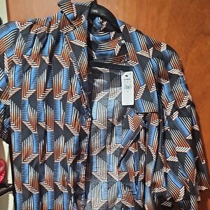 Expres Stylish shirt with a geometric pattern in black, blue, and brown. You will stand out in this unique pattern.