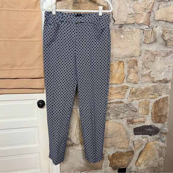 Classic Talbots Hampshire ankle pants in a navy and white geometric pattern. Great career or casual wear. Flattering curvy fit. EUC, measurements in photos.