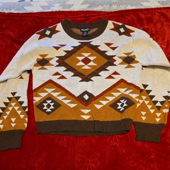 Stylish sweater with a bold geometric pattern.