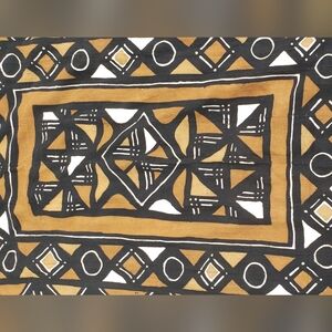 Add a touch of elegance to your home with this geometric patterned throw blanket. Featuring a striking black, white, and tan design, this blanket is perfect for any decor style.