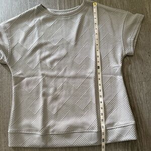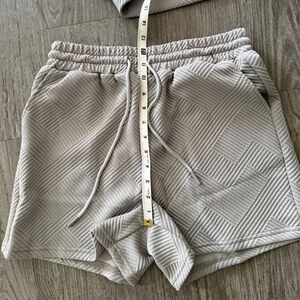 Stylish short set with a geometric pattern. Features a short-sleeve top with banded hem and matching shorts with side pockets and an elastic waist with drawstring. Perfect for casual wear.