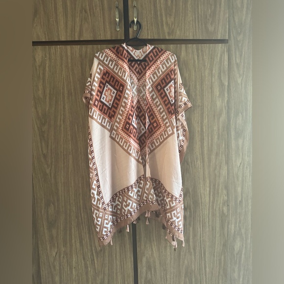 Elevate your style with this chic geometric patterned 100% Viscose Cardigan. Featuring a blend of brown and cream colors, this piece is perfect for any occasion. NWT By Bijorca The PTP is 38. Length is 35 in the front and 40 in the back. It’s a one size fits most.
