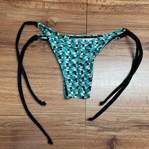 Bikini bottom with side tie. Also has ruched back which helps create a bubble-butt illusion, enhancing your bootie’s curves. Bikini bottom is lined in the front and back.