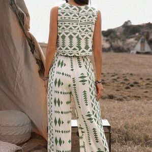 Geometric Print Loose Fit Casual 2pcs/Set Outfit