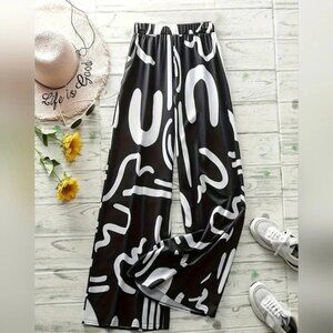 Geometric Print Loose Wide Leg Fashionable Pants For Women