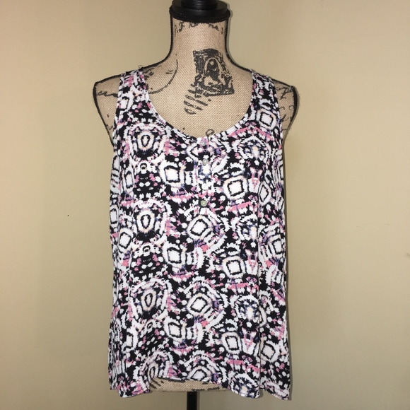 This is a fun geometric print tank. It is perfect for the summer paired with shorts or jeans. It is used but in excellent condition.