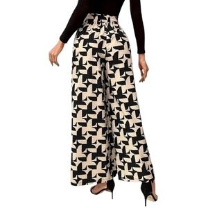 Casual Wide-Leg Pants with Geometric Print. Elastic waistband and pockets.