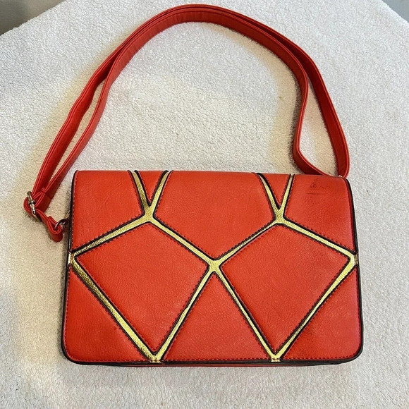 Geometric Puzzle Bag Women’s Red Orange Gold Small Rectangle Shoulder *read