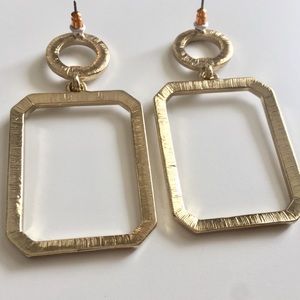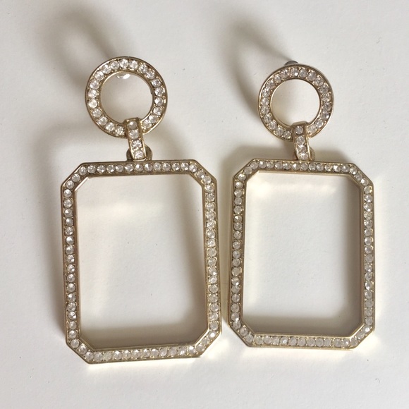 Geometric Rhinestone Drop Earrings. Gold tone NWOT APPROX 2 1/2” in length and 1 1/2” in width