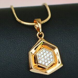 "Geometric Rose Gold Pendant with Crystal Hexagon, XPPT1575