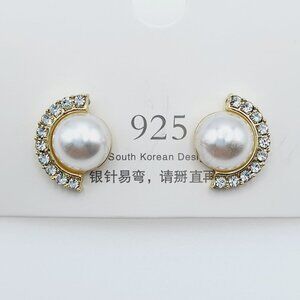 "Geometric Semicircle Shape Pearl Stud Earrings For Women, FB16FA1059