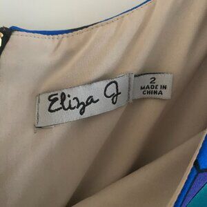 Geometric Shift Dress from brand Eliza J. Size 2. Has gold zipper on back, half sleeves and tan under layer. Super silky material! Dress is 95% polyester, 5% spandex, under layer is 100% polyester. Measurements: PTP 15in (38cm), Length 34in (86.36cm). Any questions please ask!