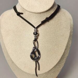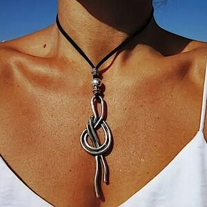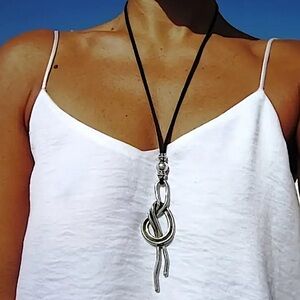 Boho pendant silver geometric leather cord necklace. Can be customized to any size.