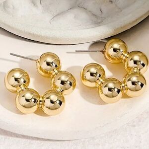 Geometric Sphere Ball C-Shaped Earrings Gold or Silver Tone: