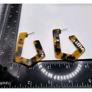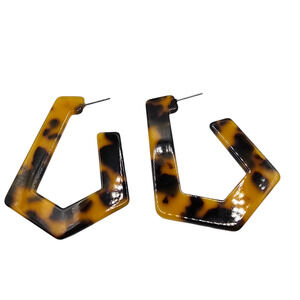 Step up your style with these trendy hoop earrings, designed for pierced ears. Made from geometric acrylic with a simulated tortoiseshell-like pattern, they add a modern twist to any outfit. Lightweight and versatile, these hoops effortlessly blend chic sophistication with everyday ease, making them a must-have accessory for any fashion-forward wardrobe. Perfect for adding a touch of bold elegance to both casual and dressy looks.