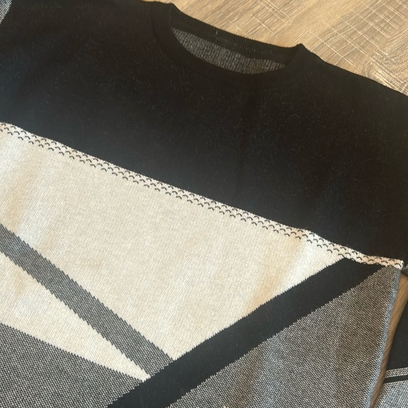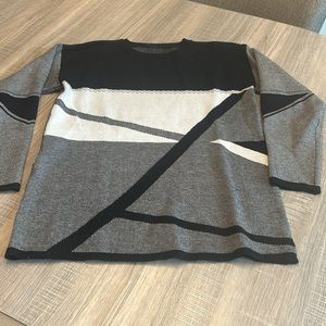 Very soft geometric sweater in gray, black and white. A fun sweater that can be worn dress or casual. Size L.