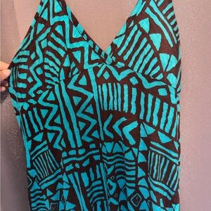 Geometric Teal & Brown Maxi Dress