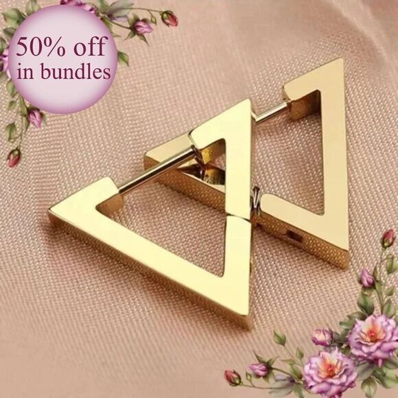 Geometric Triangle Stainless Steel Earrings, Smooth Ear Stud, Trendy Earrings