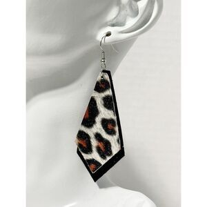 Geometric Vegan Leather Dangle & Crystal Round Earrings Peach & Black 2 Pairs