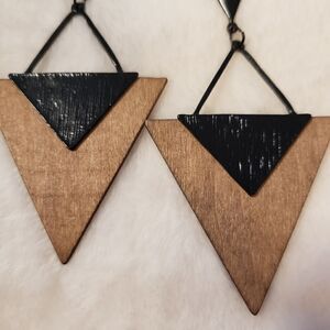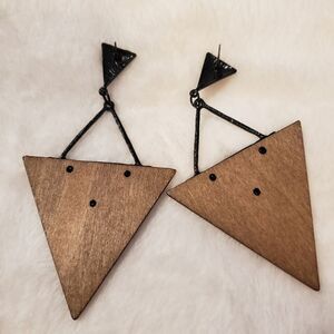 Mixture of wood and metal materials Geometric triangle drop earrings Post backs NWOT, never worn A-41
