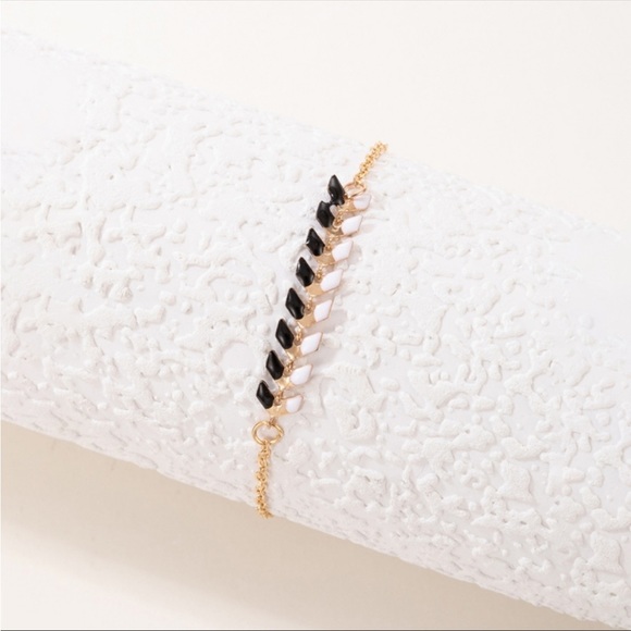 Black and white geometric bracelets; material: zinc alloy; size: 22cm+5cm
