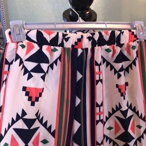 Wide leg geometric pants are 25” long and 14” circumference great for summer days and nights