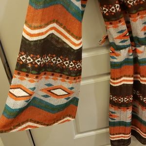 Mesh w lining. Bell sleeves. Belt loops.